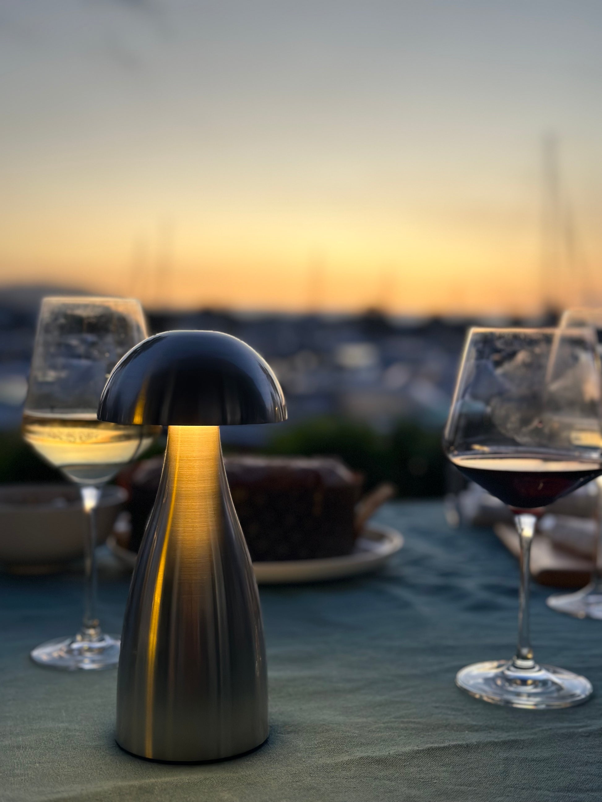 Introducing the Mushroom Cordless Table Lamp in brushed silver - a modern lighting solution that effortlessly combines style, cordless freedom, and the power to set the perfect ambiance for any occasion. With its chic mushroom-shaped design in brushed gold, this lamp is designed to elevate your space and illuminate any table, anytime, anywhere.